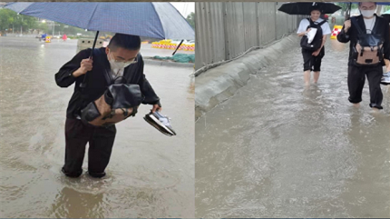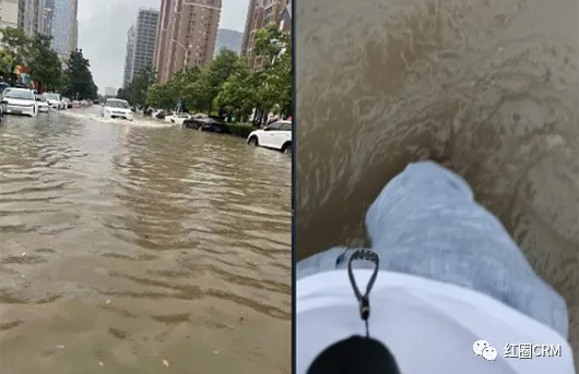 16點(diǎn),紅圈運(yùn)營(yíng)團(tuán)隊(duì)的幾名同事剛剛結(jié)束對(duì)一家客戶拜訪,正在前往另一家客戶的路上,此時(shí)雨水已經(jīng)淹沒膝蓋。