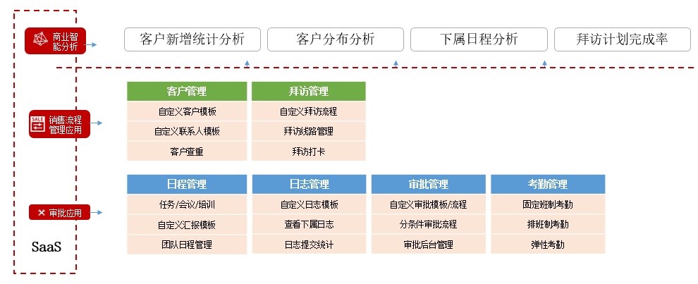 紅圈通是一款主要針對于通用行業的客戶管理與銷售協同管理 SaaS 產品,集合了客戶管理、拜訪管理、考勤、審批、日志、日程、數據分析等功能,滿足企業銷售自動化和辦公自動化的需求。