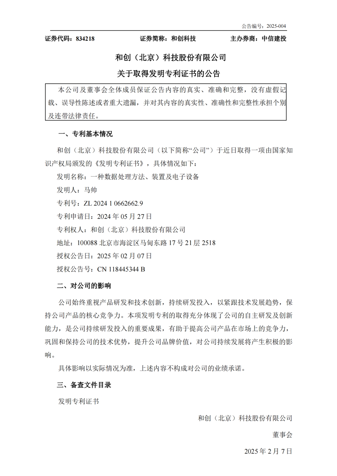 和創科技開年喜訊:連獲兩項最新專利,賦能企業工程管理系統智慧升級