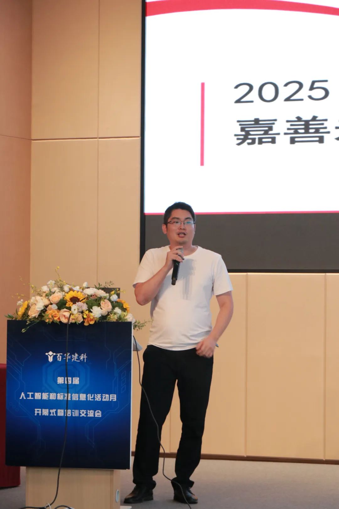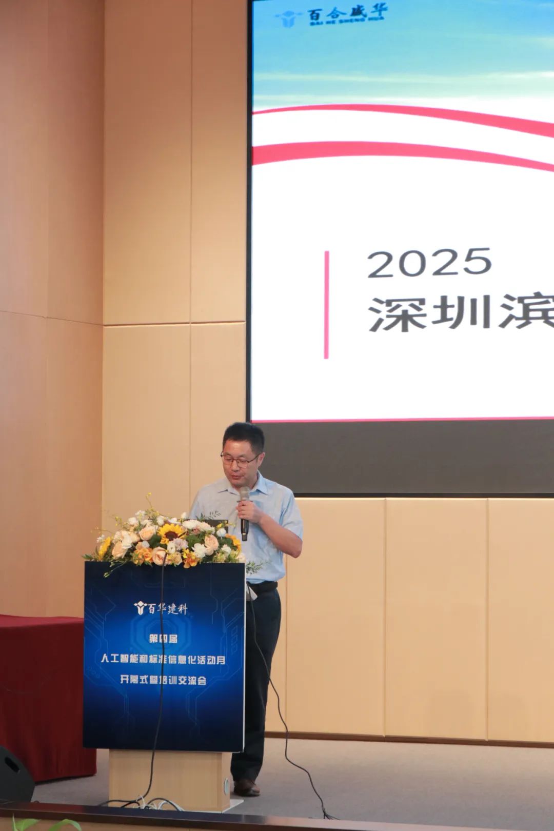 隨后,公司人工智能發展部副總經理鄒佳運發布《人工智能與標準信息化成果與未來發展》報告。他指出,“百華智造”管理系統已覆蓋公司94%的業務流程,實現跨部門數據共享,AI助手、AI視覺識別及AI報表分析等技術已全面落地應用。未來將重點強化預算管理模塊功能,通過授權精簡審批流程,深化AI應用,助力項目提質增效。