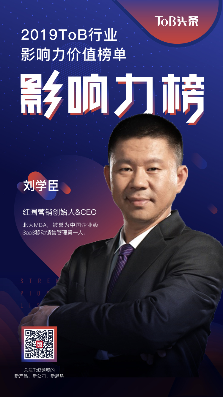 紅圈營銷創(chuàng)始人兼CEO劉學臣榮登“ToB行業(yè)2019影響力人物榜”