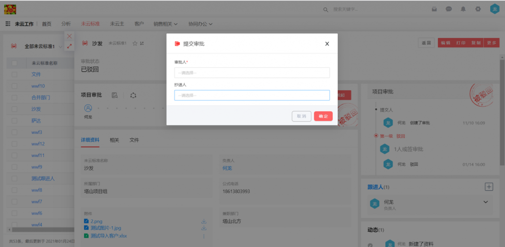 6)審批流發起時,如果同時需要選擇抄送人和審批人,會合并至一個窗口內進行選擇