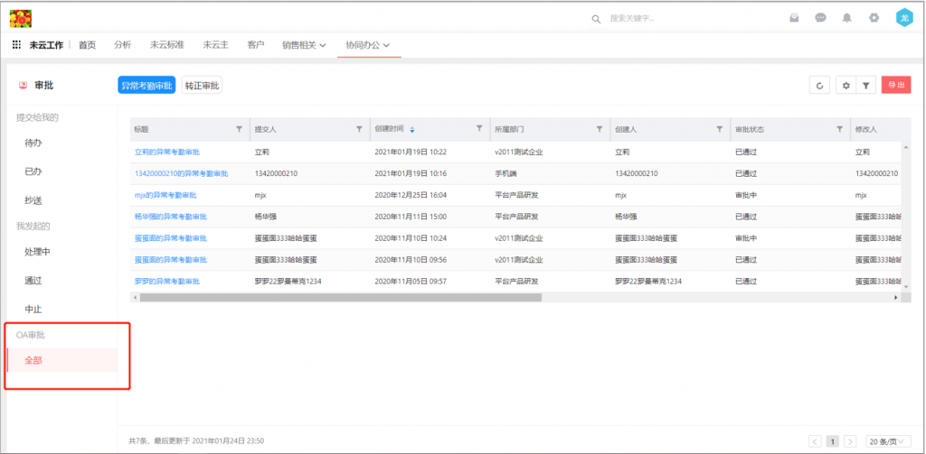 3)每個審批單可配置顯示字段,可以導出,方便人事或行政等人員,對公司全部審批單進行查看和分析