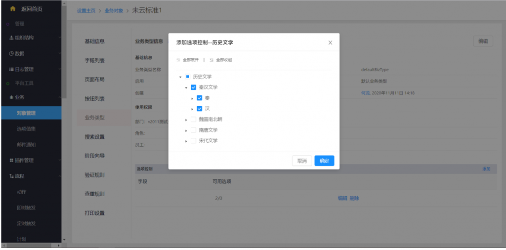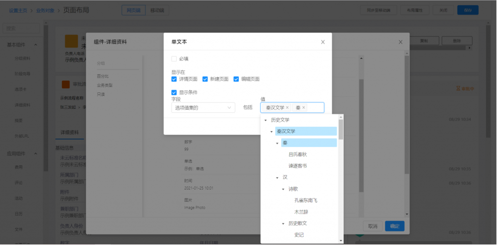 【后臺設置】后臺->業務對象->頁面設置
