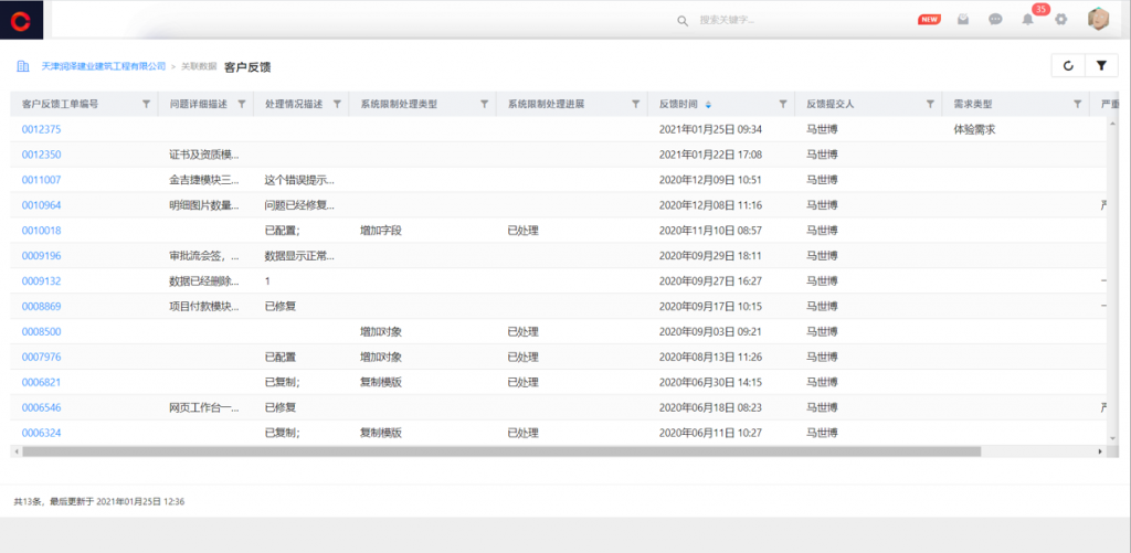 在列表頁展開二級列表,顯示字段隨著當前視圖的顯示字段配置變化。如工程行業的合同對象一般有主合同、補充合同兩種類型,補充合同要關聯原主合同,這樣查看主合同時,可以展開二級合同對應查看。