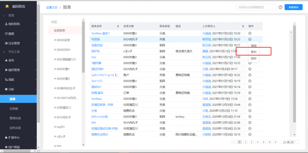 1)報表支持復制,方便同一個對象的多條件報表快速創建