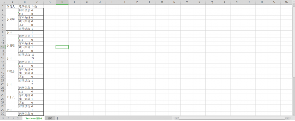 6)分類和矩陣式報表導出時,維度和小計合計的單元格會進行合并