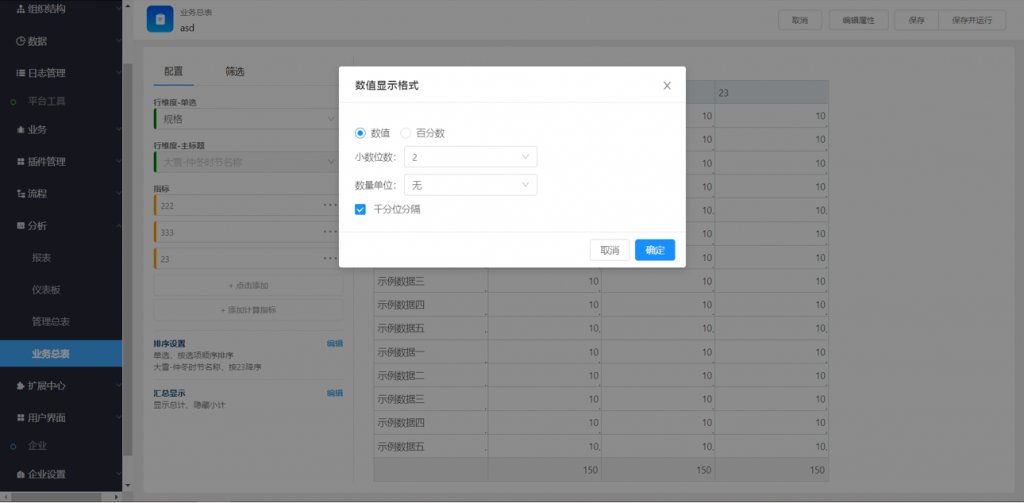 2) 指標可設置數值顯示格式,便于超長數據的單位縮進,或小數位數的格式統一等