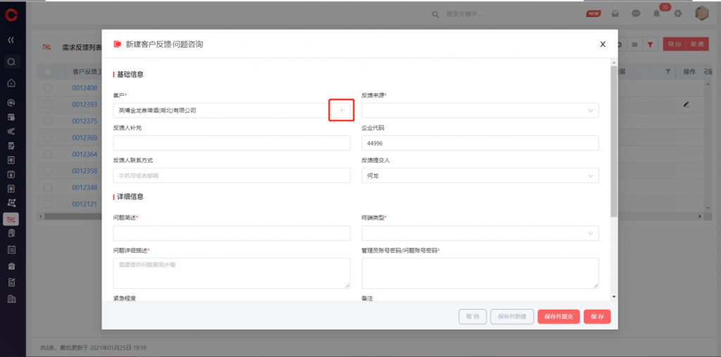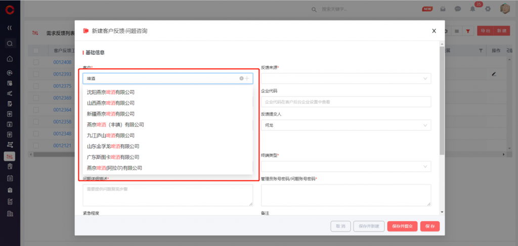 1)新建編輯數據時,查找關系字段支持快速搜索和選擇,免除進入彈窗頁的多級操作,直接通過主標題查找完成選擇,提高數據錄入效率