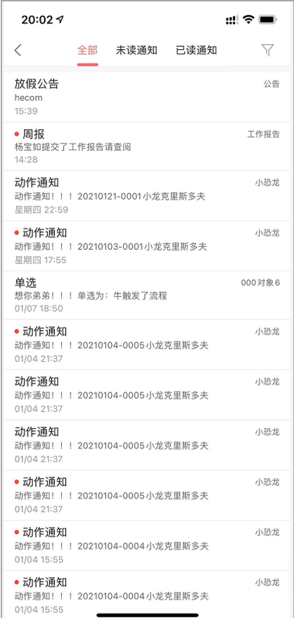 2)手機端消息通知列表,未讀已讀顯示優化