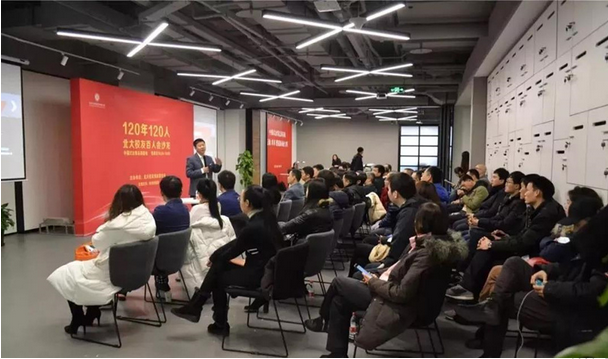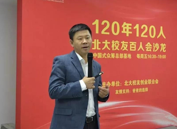 北大校友創(chuàng)業(yè)聯(lián)合會副會長,飛找創(chuàng)始人,97級數(shù)學(xué)系校友徐志勇?lián)伪緢鲋鞒旨钨e,介紹了“120年120人——北大校友百人會沙龍”活動(dòng),它是北大校友創(chuàng)業(yè)聯(lián)合會為了慶祝2018年北京大學(xué)120周年雙甲子華誕而推出的系列交流活動(dòng)。該活動(dòng)從北大校友中精選出120位各細(xì)分領(lǐng)域排名靠前的行業(yè)領(lǐng)軍人物代表作為演講嘉賓,主要目的是為校友提供一個(gè) “社交+學(xué)習(xí)+合作”的平臺。