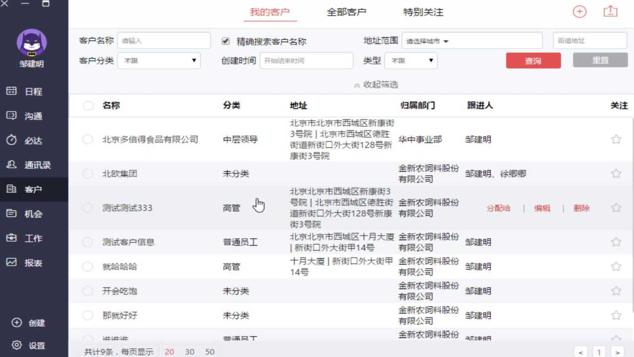 紅圈CRM「客戶」展示: