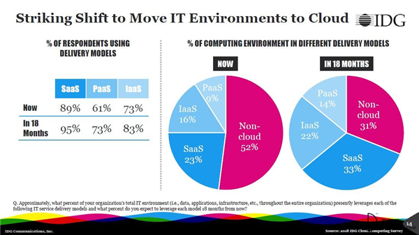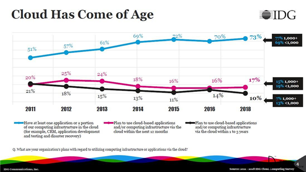 IDG?2018年企業(yè)云研究報告,73%的企業(yè)“處于云中”