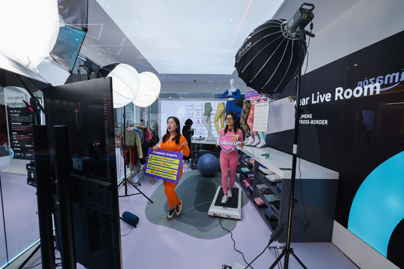 2023年11月23日,在浙江杭州舉行的第二屆全球數(shù)字貿(mào)易博覽會絲路電商館,跨境電商進行直播銷售。新華社記者 徐昱 攝