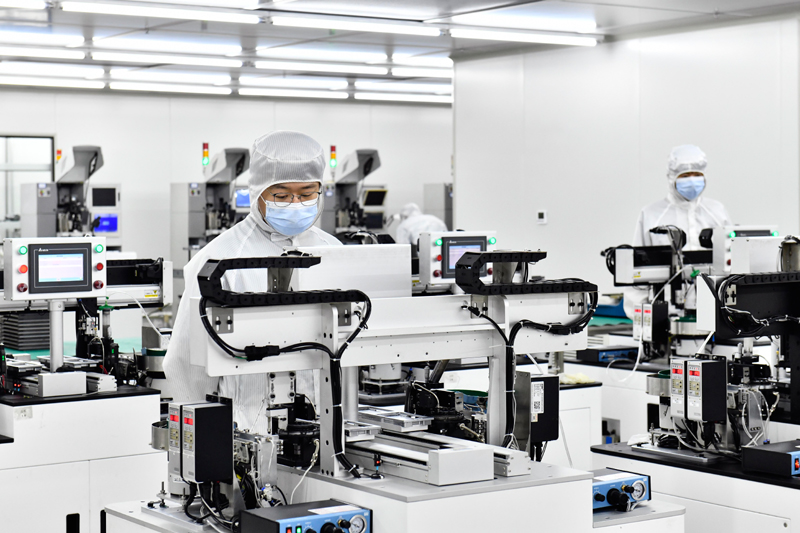 2023年6月29日,在山東省日照高新技術產(chǎn)業(yè)開發(fā)區(qū)智慧微電產(chǎn)業(yè)園,工作人員在生產(chǎn)濾波器。新華社記者 郭緒雷 攝