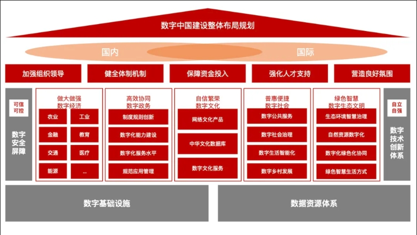 建設(shè)數(shù)字中國是數(shù)字時代推進(jìn)中國式現(xiàn)代化的重要引擎,是構(gòu)筑國家競爭新優(yōu)勢的有力支撐。2023年2月,中共中央、國務(wù)院印發(fā)《數(shù)字中國建設(shè)整體布局規(guī)劃》,明確數(shù)字中國建設(shè)按照“2522”的整體框架進(jìn)行布局,即夯實(shí)數(shù)字基礎(chǔ)設(shè)施和數(shù)據(jù)資源體系“兩大基礎(chǔ)”,推進(jìn)數(shù)字技術(shù)與經(jīng)濟(jì)、政治、文化、社會、生態(tài)文明建設(shè)“五位一體”深度融合,強(qiáng)化數(shù)字技術(shù)創(chuàng)新體系和數(shù)字安全屏障“兩大能力”,優(yōu)化數(shù)字化發(fā)展國內(nèi)國際“兩個環(huán)境”。
