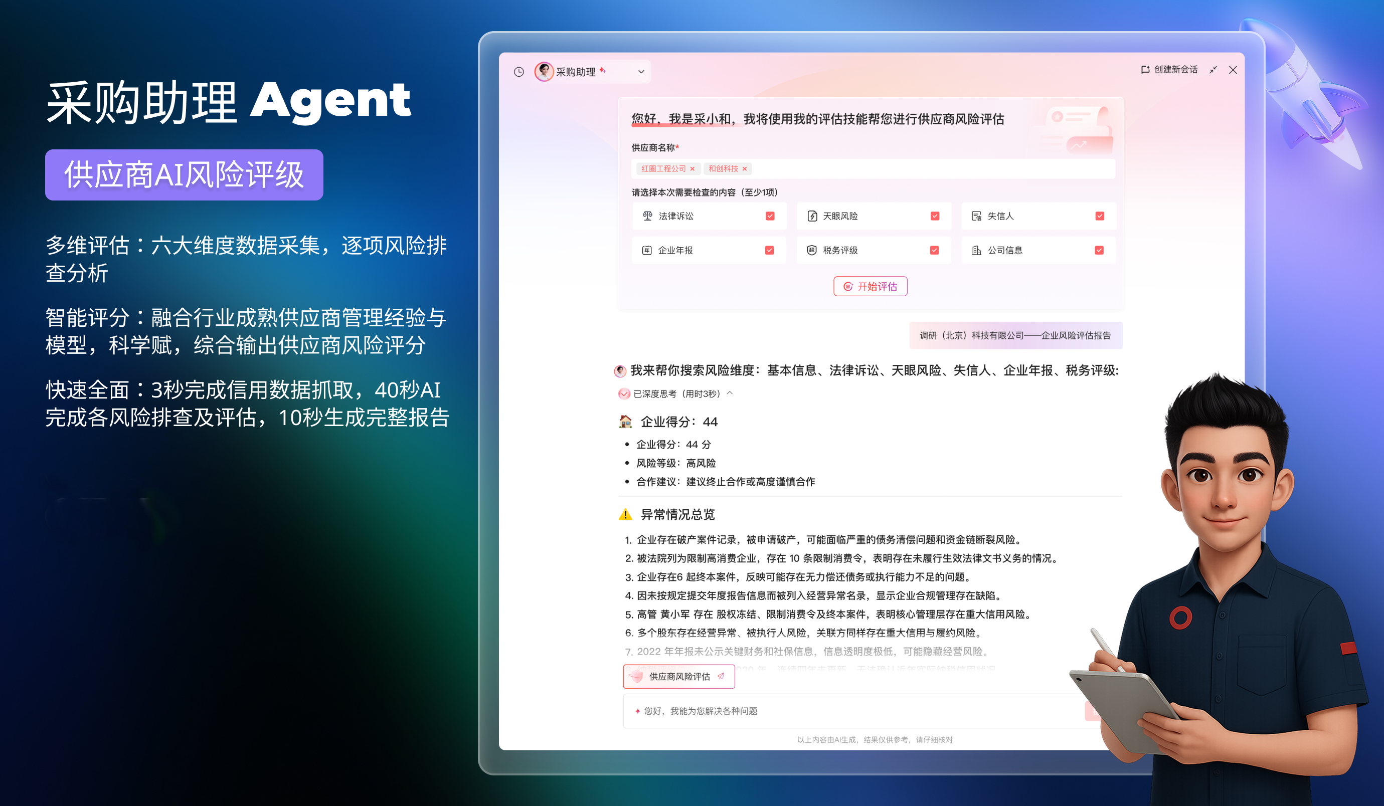 幾十個(gè)項(xiàng)目同時(shí)跑,最怕供應(yīng)商“爆雷”和單據(jù)“打架”。紅圈采購(gòu)助理Agent,幾秒鐘內(nèi)就能把供應(yīng)商的底褲扒個(gè)干凈——從法律訴訟到失信記錄,從稅務(wù)評(píng)級(jí)到企業(yè)年報(bào),六大維度一掃而過,3秒抓數(shù)據(jù),40秒出報(bào)告,風(fēng)險(xiǎn)高低一目了然。而一線的材料員們,也告別了對(duì)著混凝土票、手寫單子熬夜敲鍵盤的日子。紅圈AI錄單助手像個(gè)長(zhǎng)了眼睛的“掃描儀”,甭管多潦草的單據(jù),AI自動(dòng)識(shí)別、自動(dòng)提取、自動(dòng)匹配,錄入系統(tǒng)秒級(jí)搞定,省下90%的功夫。